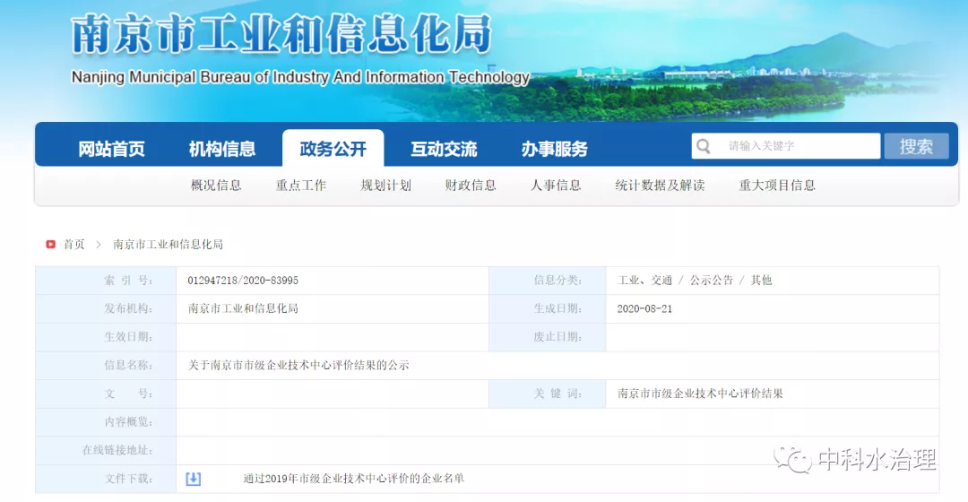 根據(jù)南京市工業(yè)和信息化局《關(guān)于做好2019年市級企業(yè)技術(shù)中心評價工作的通知》,南京中科水治理股份有限公司榮獲“南京市市級企業(yè)技術(shù)中心”認證。2014年,我司首次獲得此認證,往后每三年一次的認證均通過。