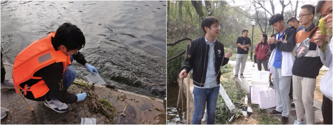 會議結束,由實驗室負責人唐坦先生帶領同學們到莫愁湖景區,進行實地勘測水樣操作演練,進一步加強理論知識,為同學們未來走向職場開啟新篇章。