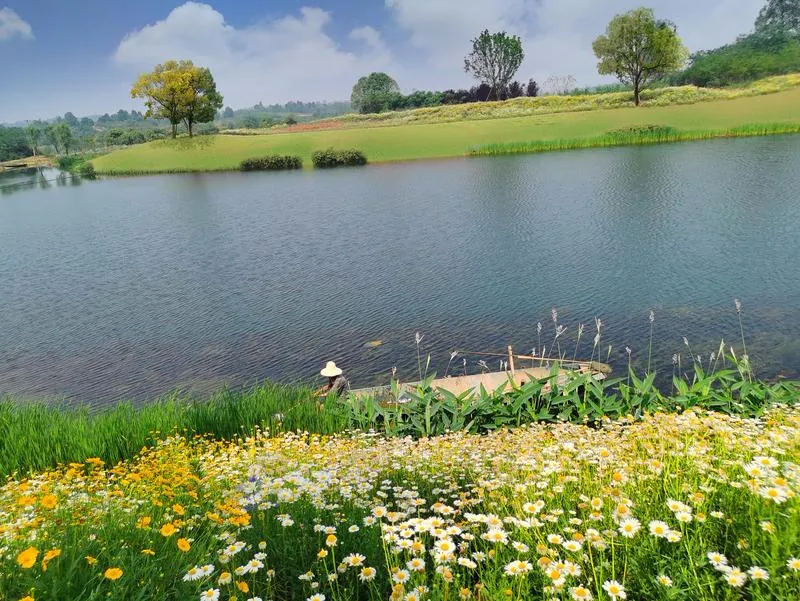 如果您夏季去過眉山黑龍灘,在水庫水源區的生態攔截溝的一池晶瑩剔透的碧水畔,陣陣涼風送爽,盛夏的暑氣也消散了許多。水岸有錯落有致的濱水植被,繁花錦簇,美不勝收,一副令人心曠神怡的濕地美景。這條經過了生態凈化的山溪隨著地勢下行汨汨注入黑龍灘水庫,為眉山人民群眾的“大水缸”水質安全做出不可小視的貢獻。