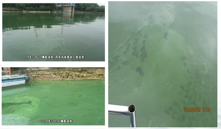 2013年以來,阿哈水庫水體出現富營養化,并且在每年的春夏交替之際(4-5月份),在南郊取水口區域、大壩區域等都出現了不同程度的藍藻水華。其中在2015年5月18日的監測中,發現南郊取水口區域水體中微囊藻毒素-LR的濃度達到了0.889μg/l,逼近1μg/L的含量標準限值(《生活飲用水衛生標準》(GB 5749-2006)、《地表水環境質量標準》(GB3838-2002))存在巨大的供水安全隱患。